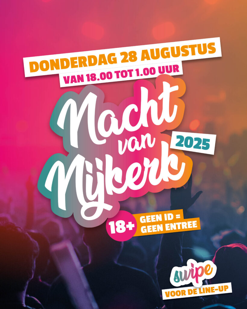 Op donderdag 28 augustus is het weer zover: De Nacht van Nijkerk keert terug naar het bruisende hart van de stad! Dit jaarlijkse evenement is inmiddels een vaste waarde op de Nijkerkse evenementenkalender en belooft ook dit jaar weer een spectaculaire avond te worden vol muziek, gezelligheid en feestvreugde.